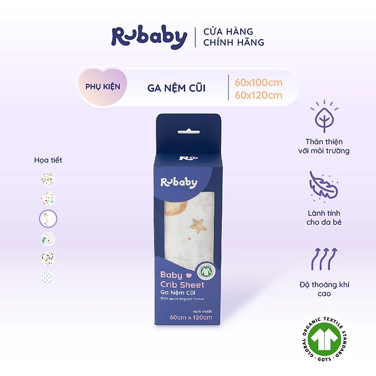 Ga Nệm Cũi Rubaby, Kết Cấu Mềm Mại, Chất Liệu An Toàn Tránh Gây Dị Ứng Cho Bé, 2 Kích Thước - Đa Dạng Họa Tiết