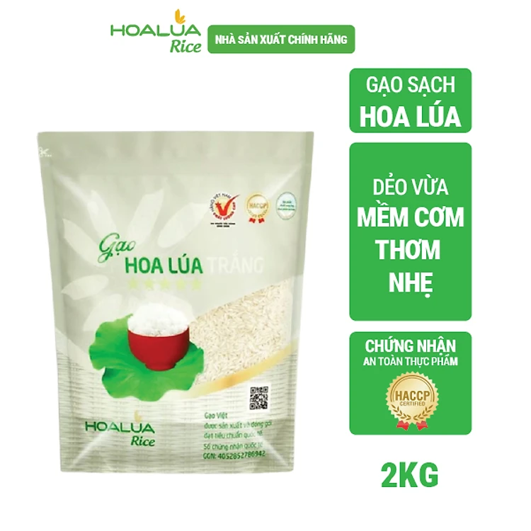 Gạo Hoa Lúa Trắng - Túi 2kg - Dẻo vừa, mềm cơm, thơm nhẹ
