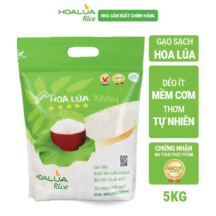 Gạo Hoa Lúa Xanh - Túi 5kg - Tơi xốp, mềm cơm, dẻo ít, thơm nhẹ