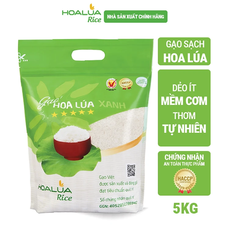 Gạo Hoa Lúa Xanh - Túi 5kg - Dẻo vừa, Mềm cơm, Thơm tự nhiên