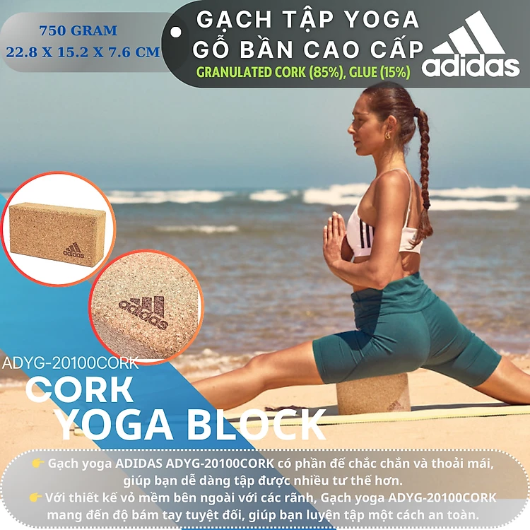 Gạch Tập Yoga Gỗ Bần Chính Hãng ADIDAS ADYG-20100CORK Cork Yoga Block (1 Viên) - Gạch Gỗ Bần Cao Cấp