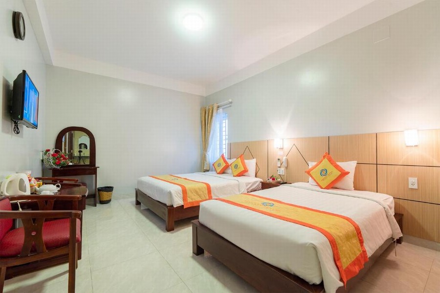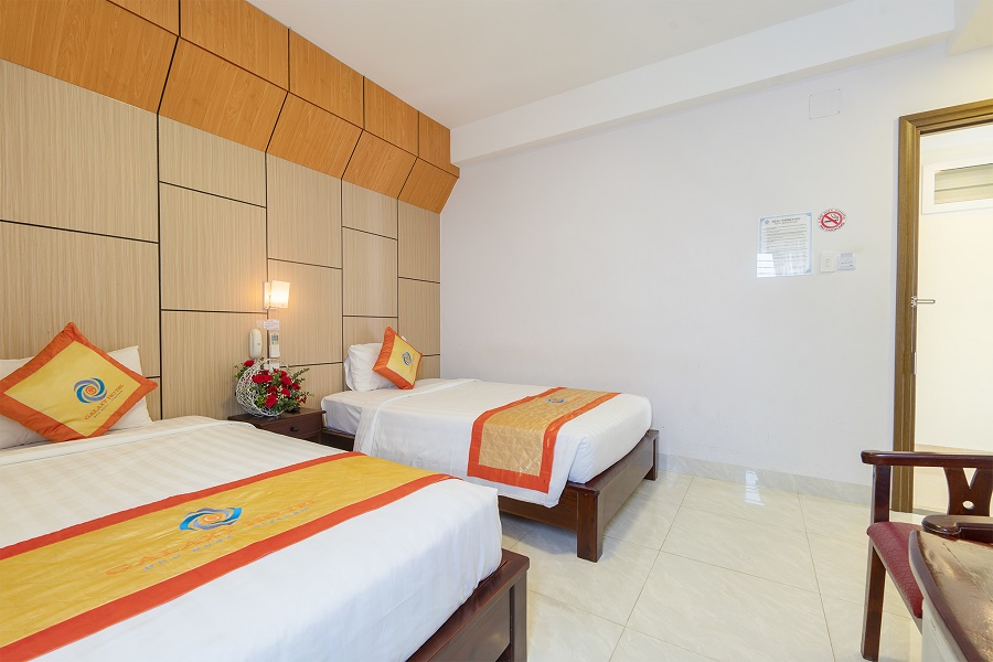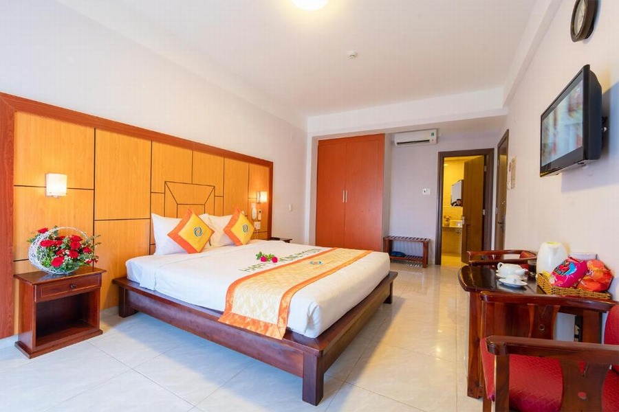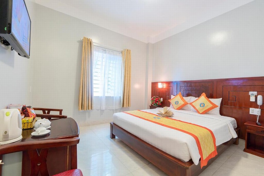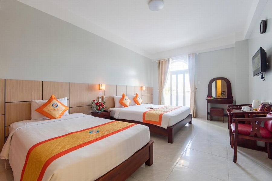 Phòng nghỉ tại Galaxy Hotel 2* Phú Quốc có không gian yên tĩnh cùng không khí se lạnh của biển và chút hơi sương của núi đồi hùng vĩ thích hợp là địa điểm nghỉ dưỡng cho các cặp đôi hay những ai muốn tìm một nơi để nghỉ ngơi, thư giãn sau những bộn bề của cuộc sống.