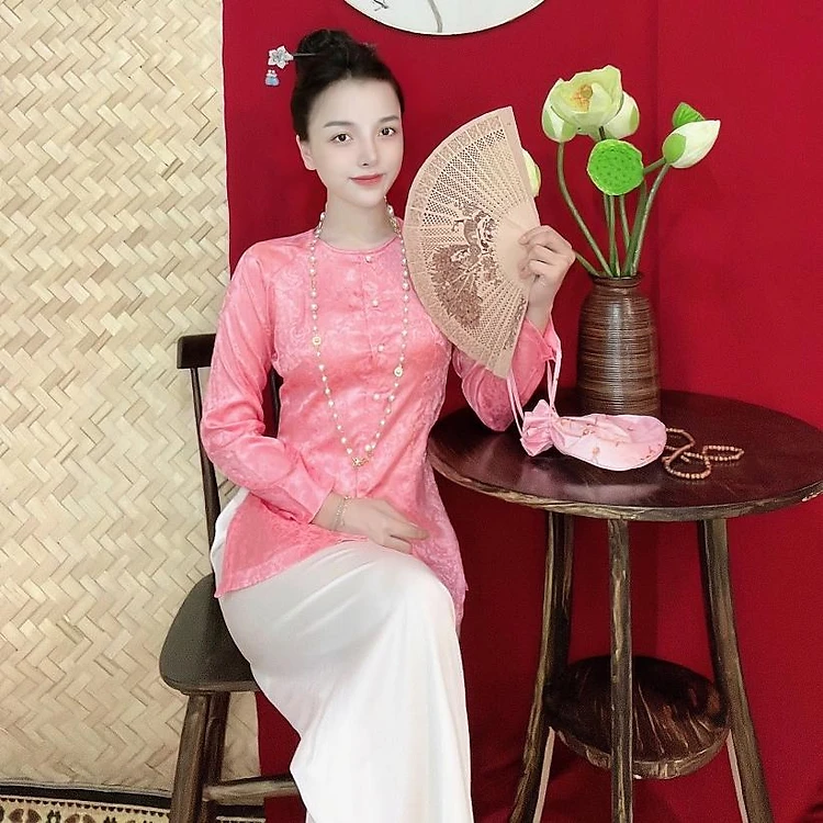 GẤM BÀ BA CỔ TRÒN Bigsize Trang phục truyền thống,Bộ quần áo Phật tử, đồ lam đi chùa mẫu nữ vải gấm
