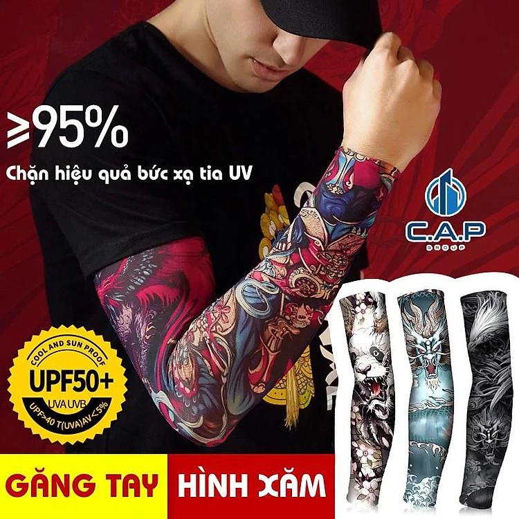 Găng bao tay hình Xăm 3D giả Tattoo nghệ thuật CAO CẤP Nam Nữ dài chống nắng chống tia UV