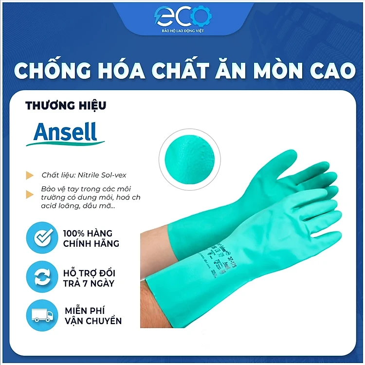 Găng tay bảo hộ rửa chén ngăn hóa chất và dầu mỡ Ansell 37-175 độ dày cao, bền dai