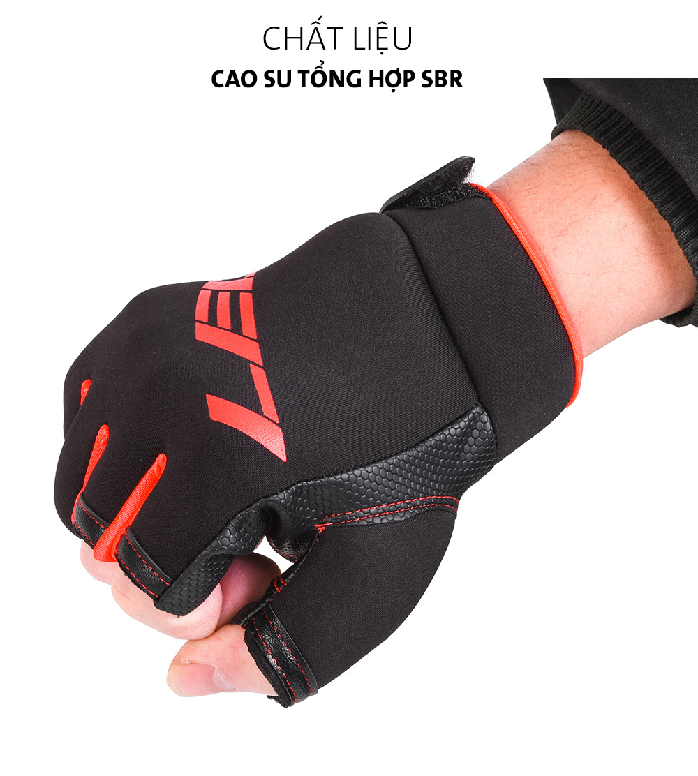 · Toàn bộ phần lòng bàn tay được lót lớp cao su chống trượt SBR giúp tăng ma sát, tự tin nhấc cần, rê cá, thêm mồi… không trơn trượt, không thấm mồ hôi.