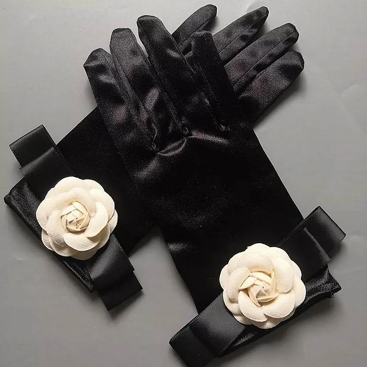 Găng tay chất liệu satin màu đen đính hoa cho Cô dâu và Dạ hội, đi tiệc, sự kiện, đạo cụ cosplay, chụp ảnh, studio MS: 45151
