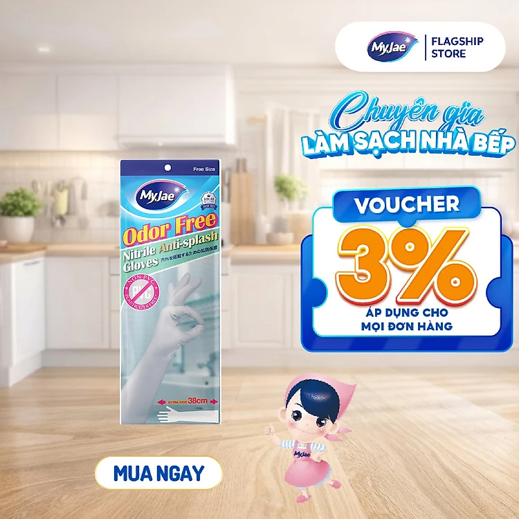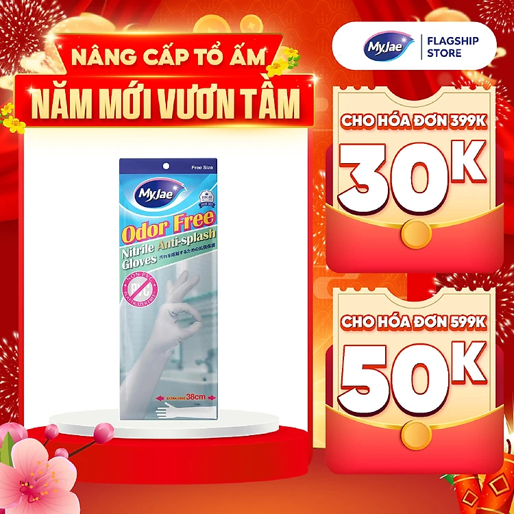 Găng tay dáng dài Nitrile không mùi MyJae rửa chén, bát, dọn dẹp nhà cửa 38CM