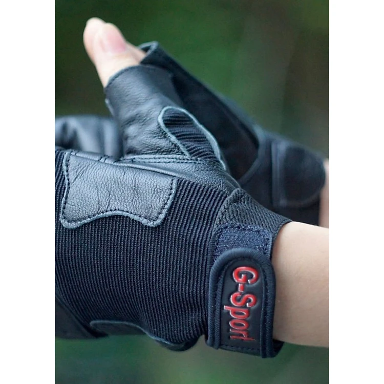 - Găng tay G-Sport với kiểu găng nửa ngón cho cảm giác thật tay hơn, cảm giác đôi tay linh hoạt hơn so với găng tay cả ngón. Cổ tay sử dụng loại khóa dán, chun co giãn giúp dễ dàng đeo, tháo găng tay.