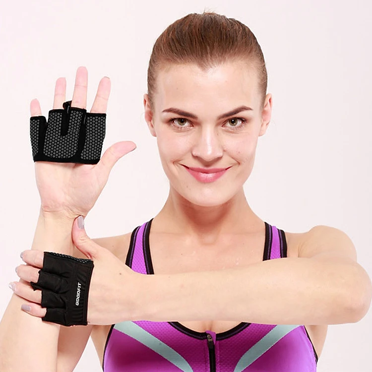 Găng tay hở ngón, bao tay tập gym có đệm silicone chống trượt, vải đục lỗ thoáng khí Goodfit GF204G