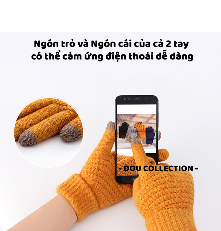 Găng Tay Len (Bao tay len) Dày Màu Trơn Giữ Ấm Thiết Kế Ngón Tay Chạm Màn Hình Cảm Ứng - Touchscreen Gloves - Mã GT000