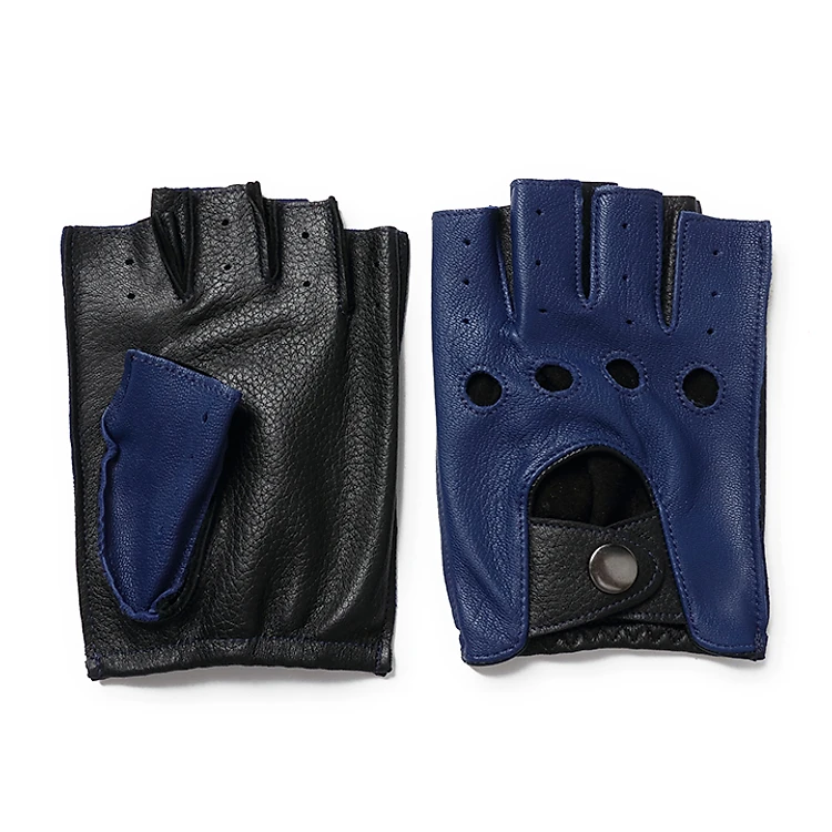 Găng tay nam hở ngón da cừu nguyên tấm BHY8853 màu Xanh dương, Bao da lái xe