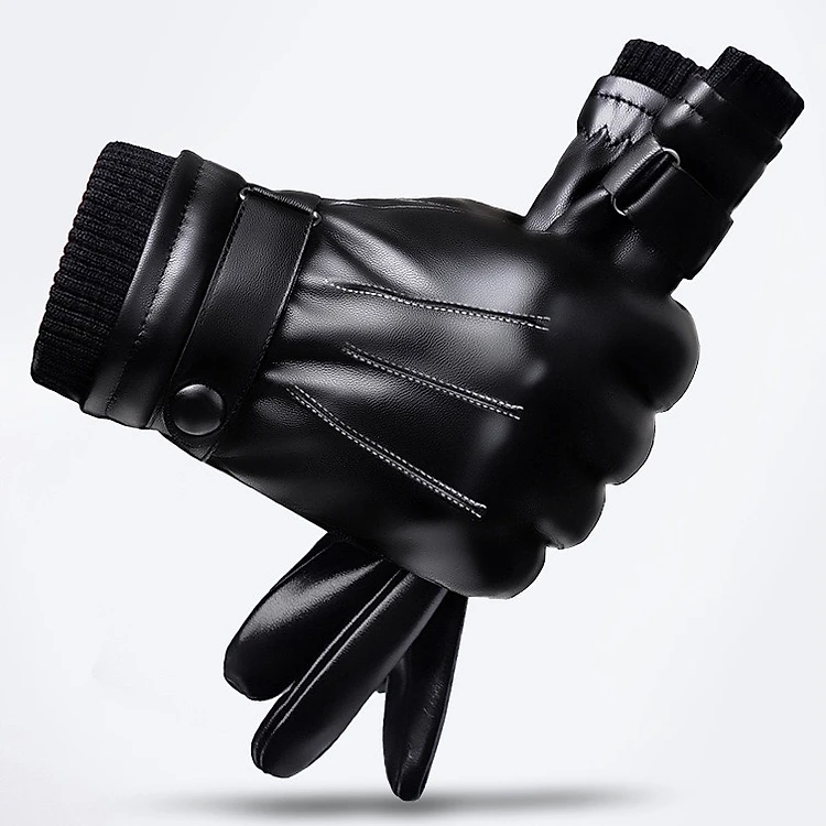 Găng tay nam mùa đông cảm ứng điện thoại lót nỉ lông ấm áp, chất liệu da PU cao cấp không bong nổ GTN9