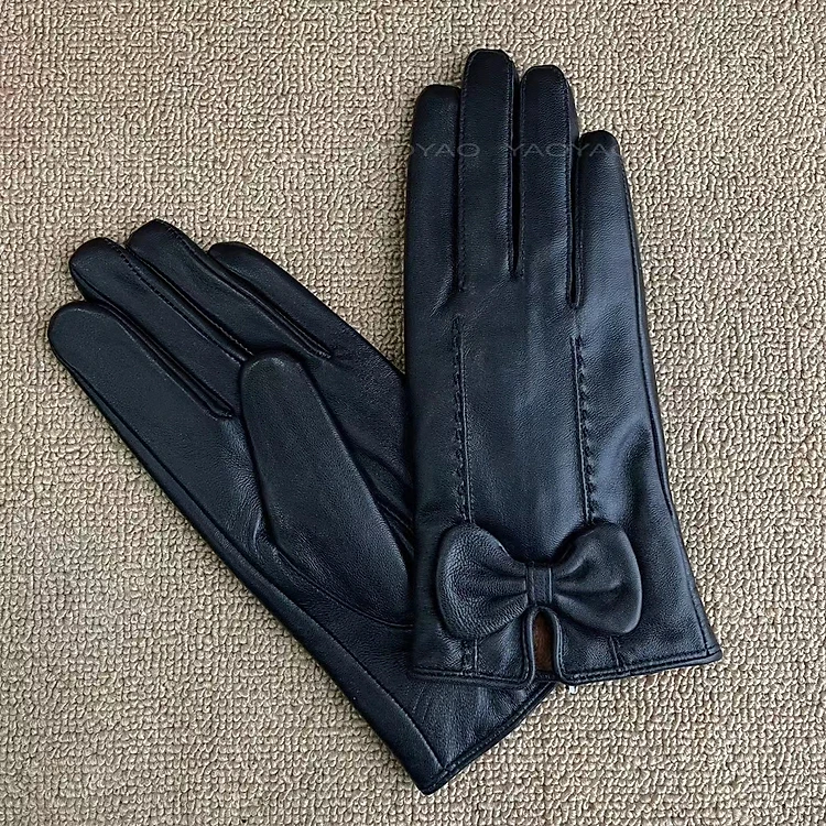 Găng tay nữ da cừu lót lông BHY8732 Bao tay nữ cảm ứng điện thoại, thoải mái lái xe