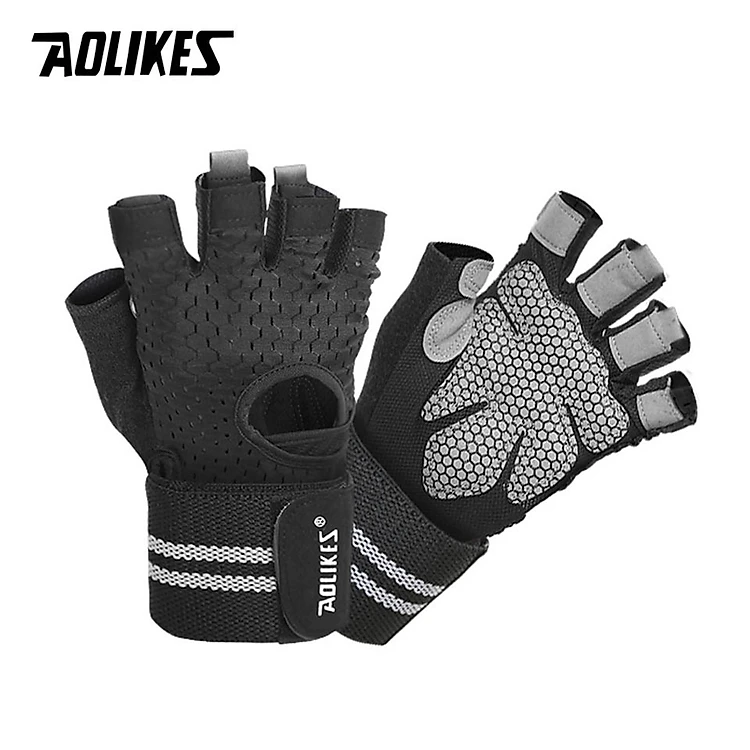 Găng Tay Tập Gym AOLIKES 113B - Nửa Ngón, Chống Trơn, Quấn Cổ Tay Chắc Chắn