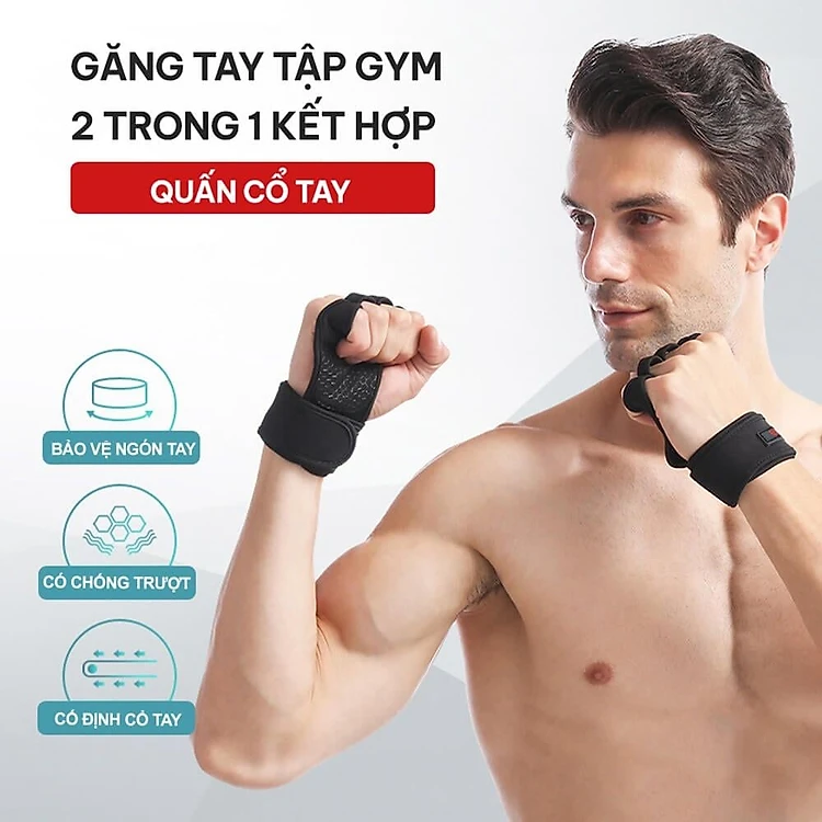 Găng tay tập Gym kết hợp quấn cổ tay chống chai tay GoodFit GF207G