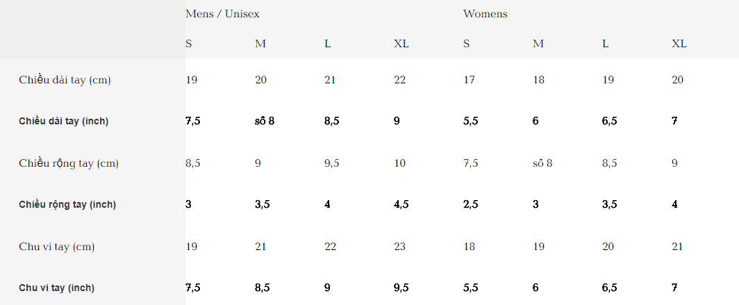 - Chiều dài tay: Thực hiện đo từ đầu ngón giữa của tay đến cổ tay