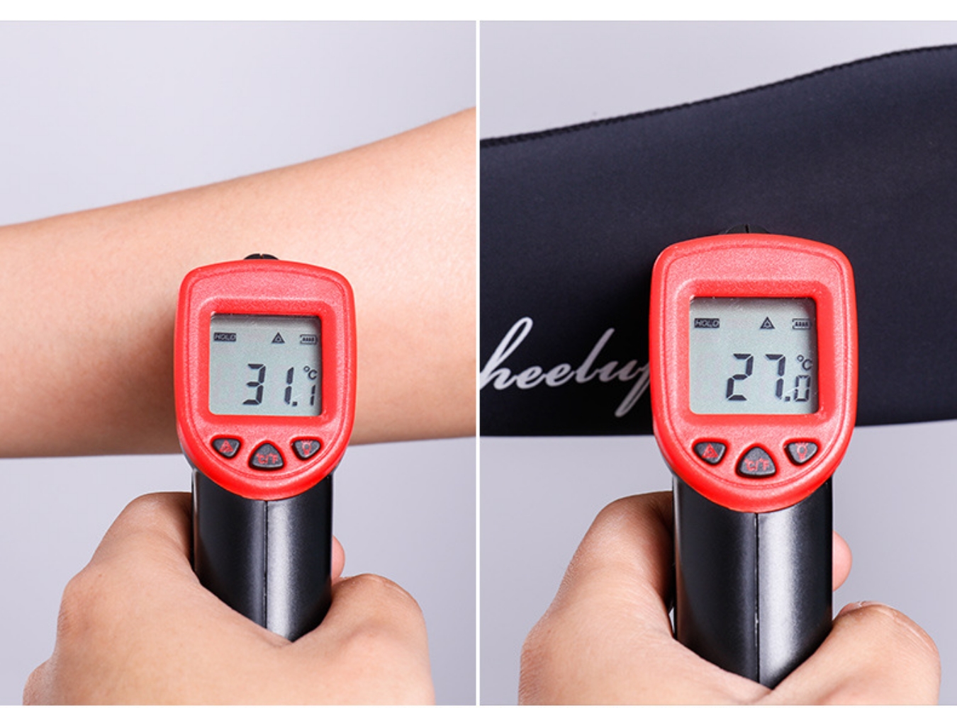 Công nghệ vật liệu mới: Lụa tơ tằm băng. Có khả năng làm mát cơ thể cực kỳ hiệu quả. Như trong hình, bạn có thể thấy bao tay đã giúp giảm nhiệt độ đi đến 4 độ