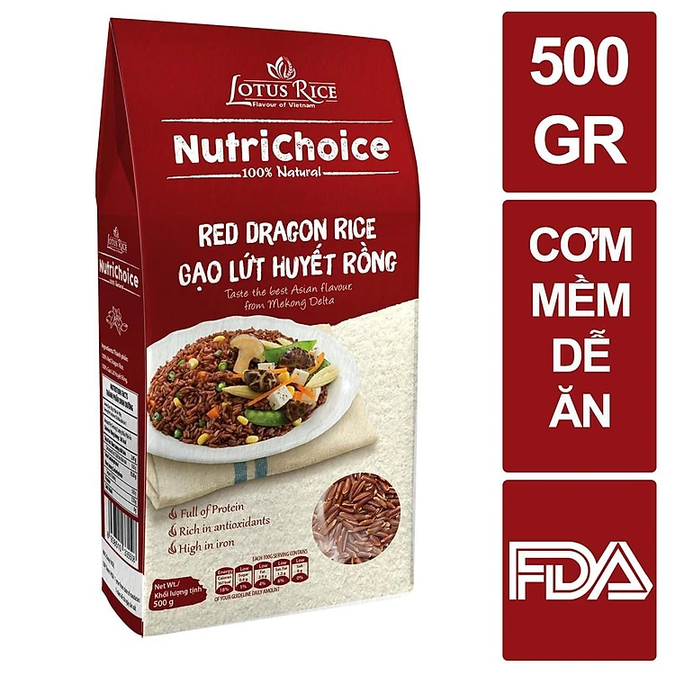 Gạo lứt đỏ Nutrichoice Huyết Rồng 500gr - Gói nhỏ tiện lợi - Cơm mềm dễ ăn