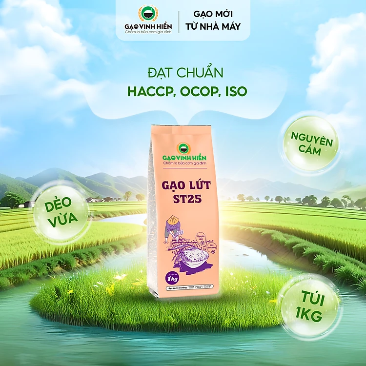 Gạo Lứt ST25 Vinh Hiển Túi 1KG - Nguyên cám, dẻo mềm, thực dưỡng