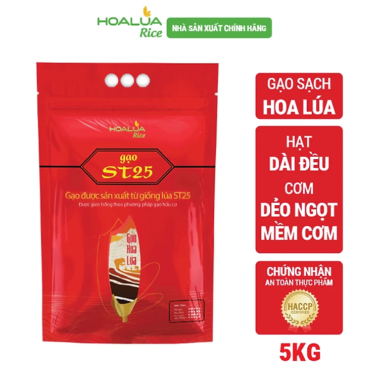 Gạo ST25 Hoa Lúa túi 5kg - Dẻo nhiều, mềm cơm, hương thơm đặc trưng