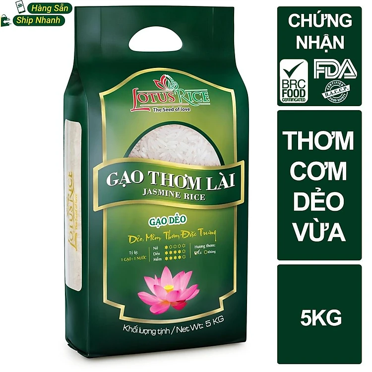 Gạo Thơm Lài Lotus Rice 5kg - Thơm ngon dẻo vừa