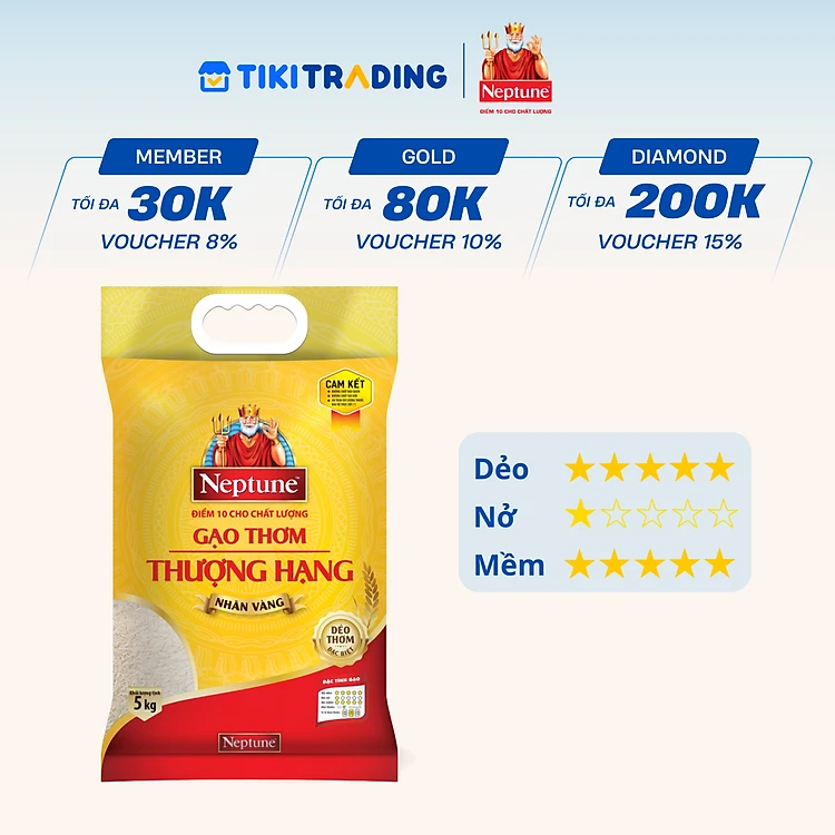 Gạo Thơm Thượng Hạng Neptune Nhãn Vàng 5kg