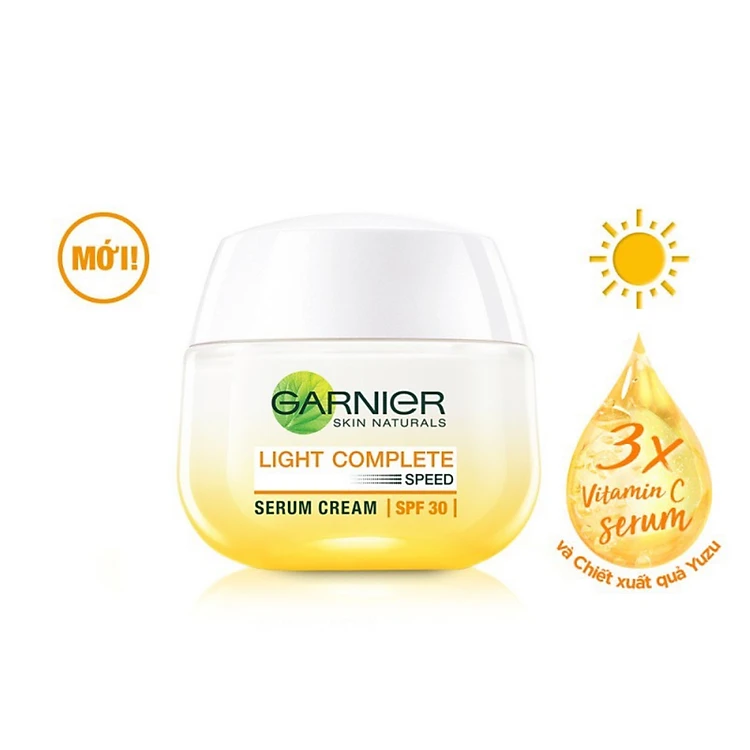[GARNIER] Kem Dưỡng Ban Ngày Chứa Vitamin C Giúp Trắng Da, Mờ Thâm Nám Mềm Mịn Bright Complete Serum Cream SPF30 50/18ml