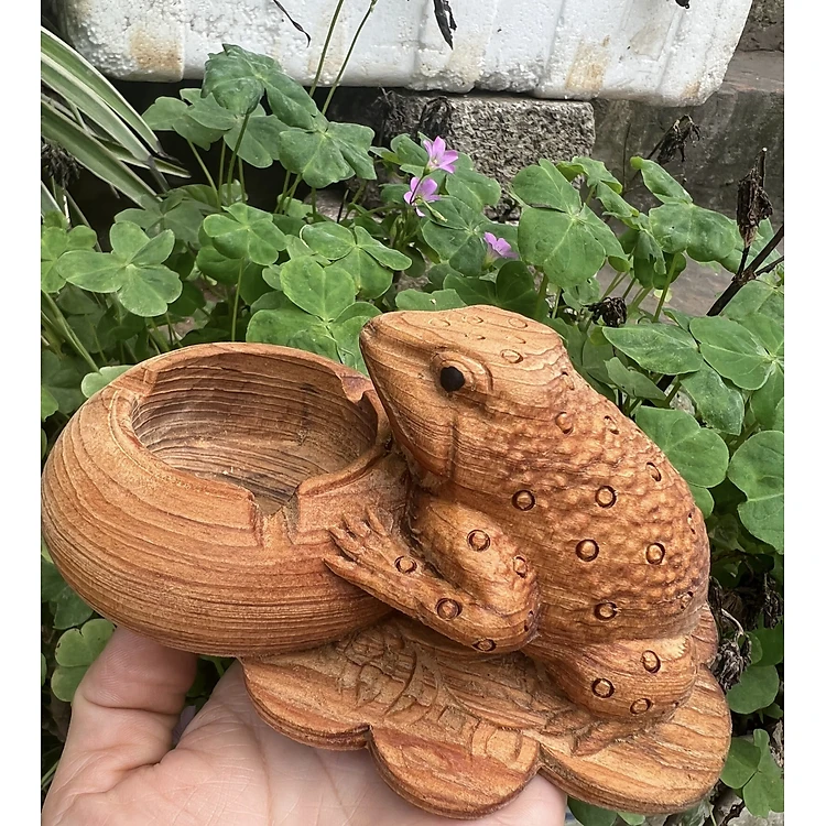 Gạt tàn khắc con cóc tài lộc bằng gỗ ngọc am thơm nức kt 15×10×7cm