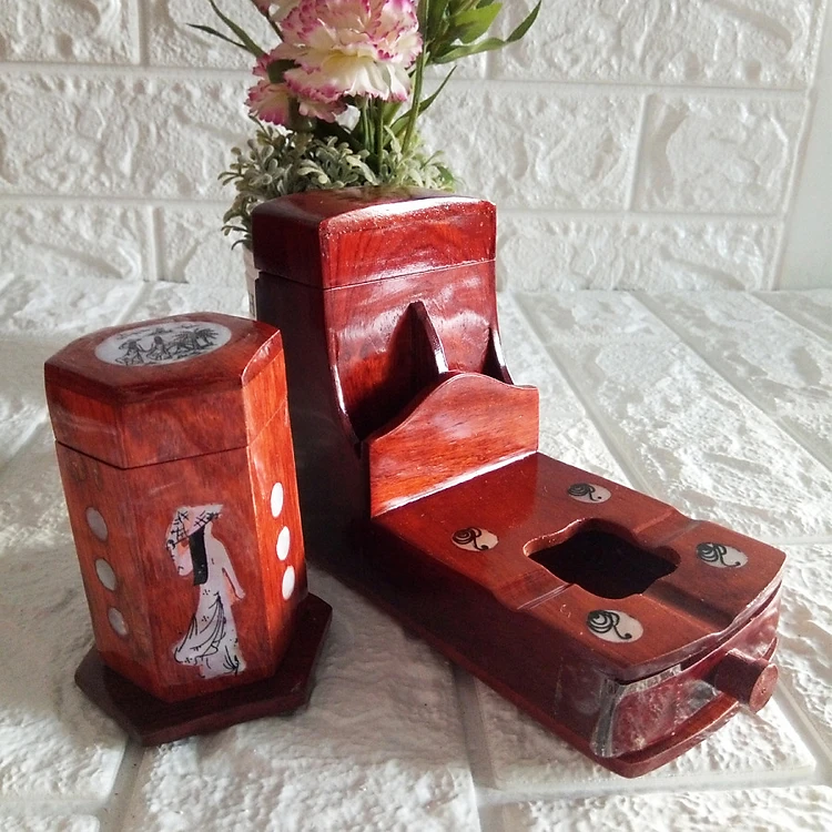 Gạt tàn có ngăn chứa bao thuốc gỗ hương đỏ kèm ống tăm CGT01