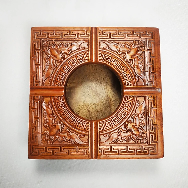 Gạt tàn gỗ hương vuông trạm khắc hoa văn tinh xảo