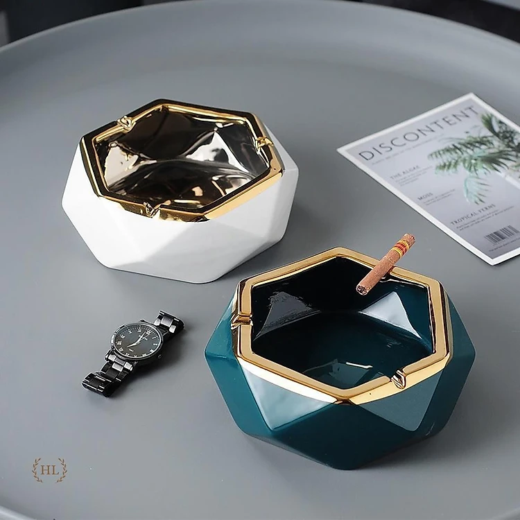 Gạt Tàn Sứ | Gạt Tàn Hoàng Kim Chất Liệu Sứ Kẻ Viền Vàng Phong Cách Tân Cổ Điển NORDIC