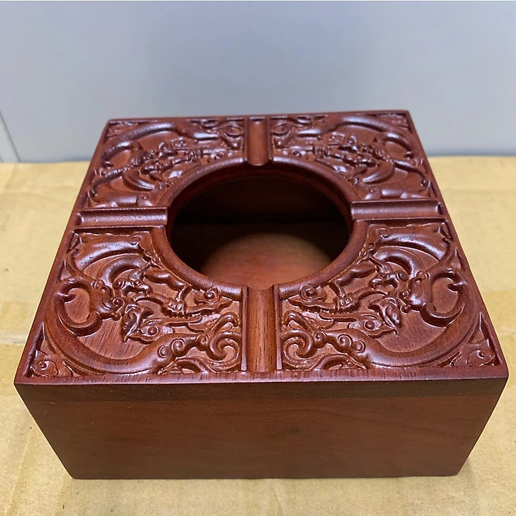 Gạt tàn vuông bằng gỗ Hương cao cấp trạm khắc hoa văn tinh xảo
