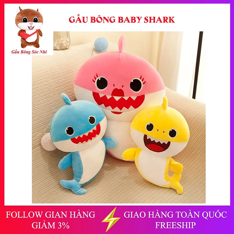 Gấu Bông Baby Shark - Cá Mập thú nhồi bông vải co dãn cao cấp size 30cm