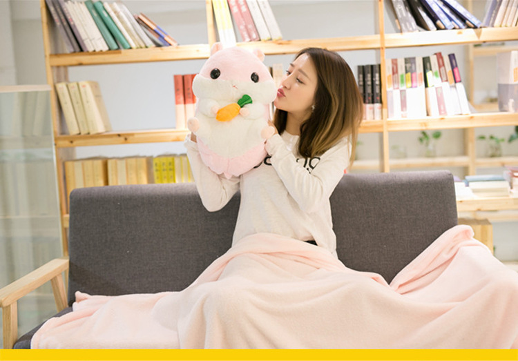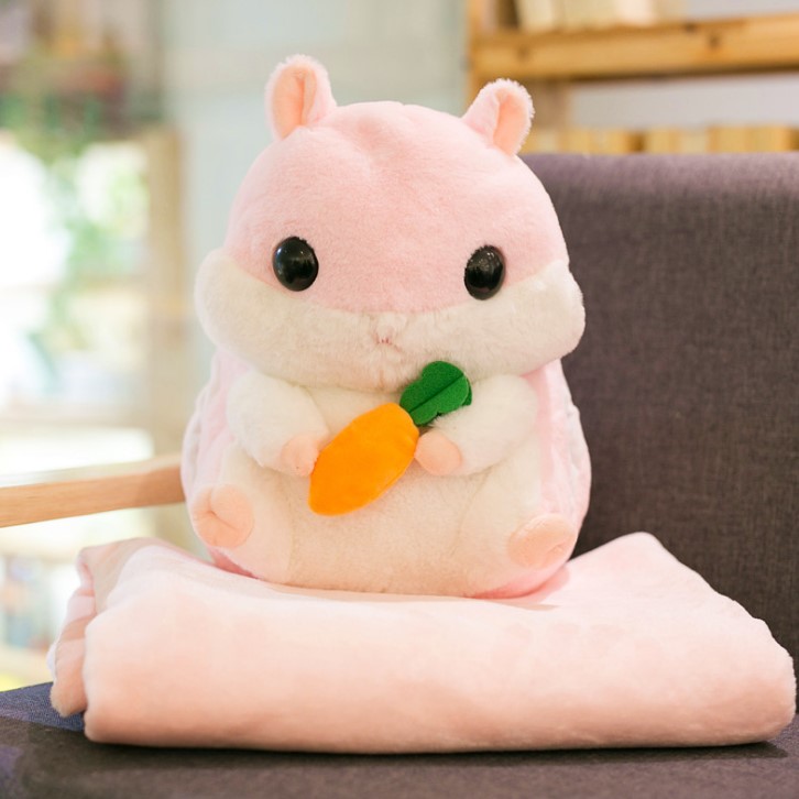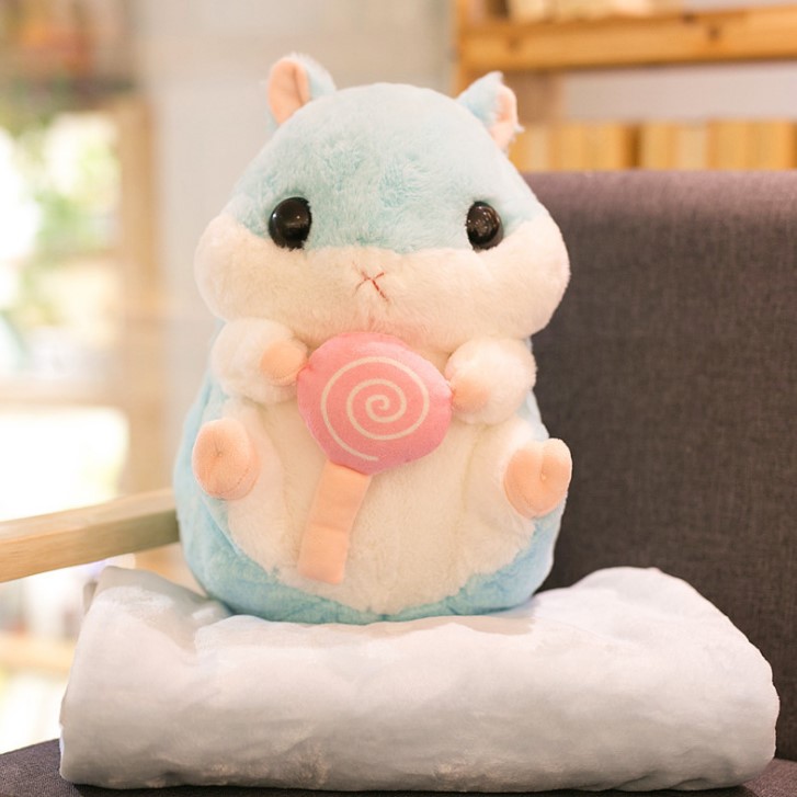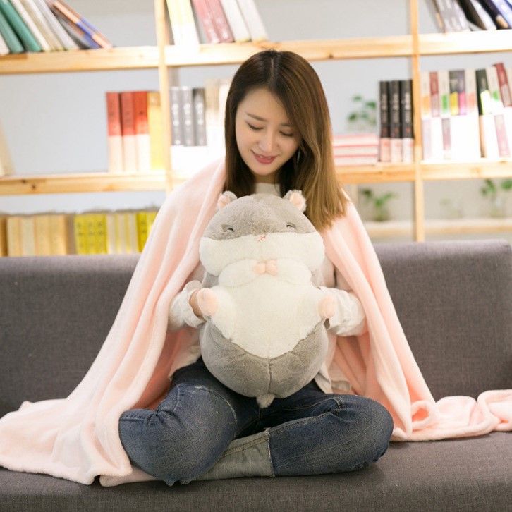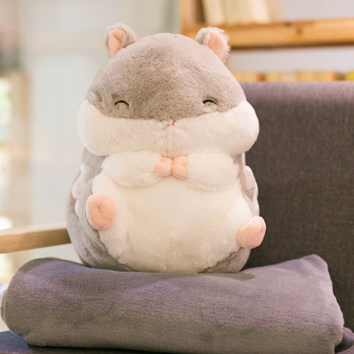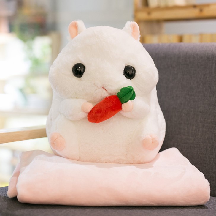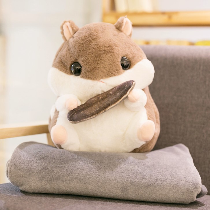 - Gấu bông Hamster kèm mền 3 trong 5 được làm bằng chất liệu vải và bông PP an toàn, mềm mại, tạo cảm giác dễ chịu, thoải mái khi tiếp xúc.