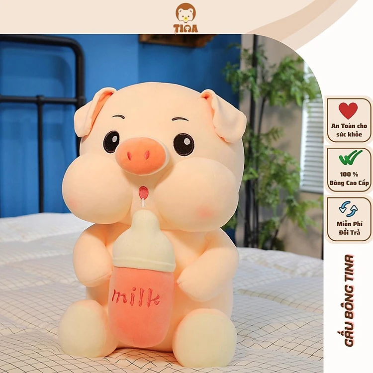 Gấu bông heo ôm bình sữa TINA, lợn bú bình mẫu thú nhồi bông siêu cute mềm mịn