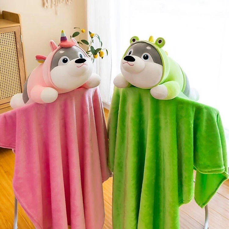 - Bộ Chăn Gối Văn Phòng 3 trong 1 hình thú bông được làm bằng chất liệu vải nhung co giãn 4 chiều siêu mềm mịn và bông PP an toàn
