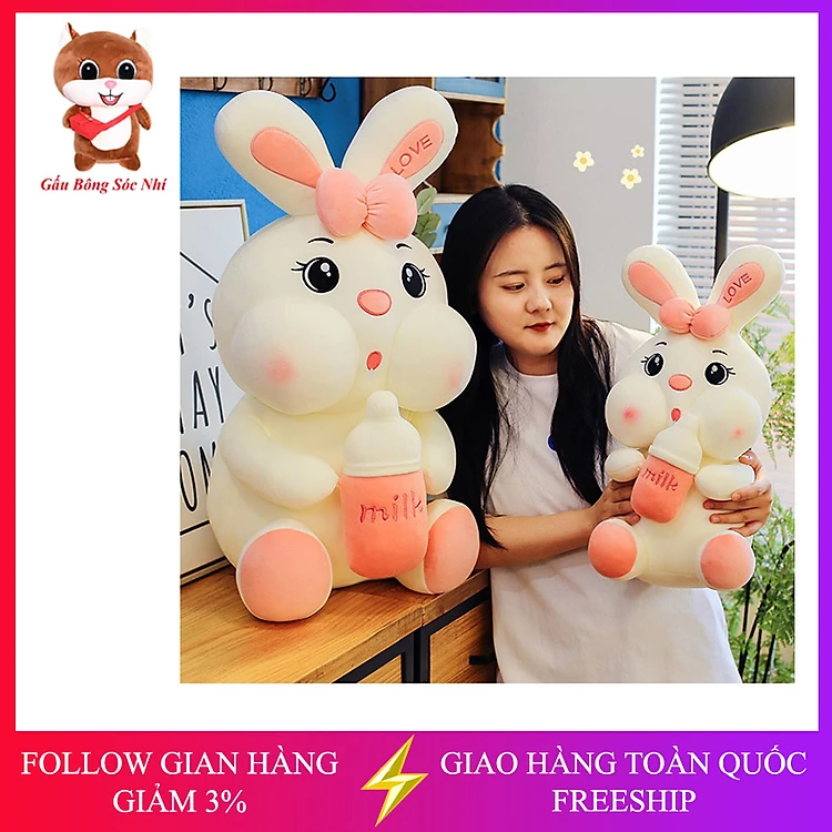Gấu Bông Thỏ Ôm Bình Sữa - Thỏ Nhồi Bông Cao Cấp