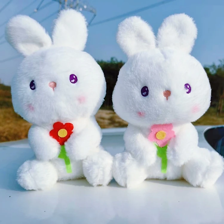 Gấu bông thỏ ôm hoa đáng yêu - Size 22cm - Quà tặng gấu bông thỏ trắng lông mịn dễ thương.