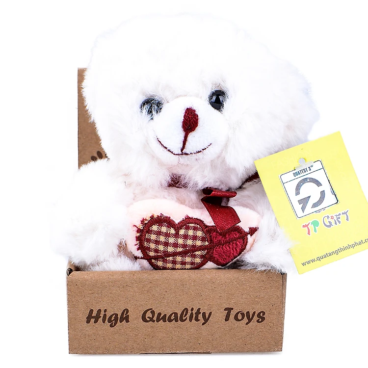 Sản phẩm được thiết kế với kiểu dáng dễ thương, bắt mắt. Lông gấu màu trắng sữa, sợi lông mảnh, mượt mà. Hai tay gấu ôm trái tim đỏ vô cùng đáng yêu. Sản phẩm thể hiện tính thẩm mỹ cao trong từng đường nét, các chi tiết mắt, mũi gia công sắc sảo, chân thực.