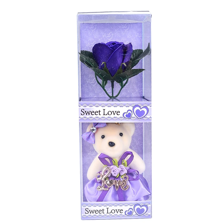 - Gấu Bông Và Hoa 255 - Tím được thiết kế rất dễ thương với gấu bông đeo nơ mềm mại đang mặc váy tím cùng một đoá hoa cùng màu xinh xắn. Với kiểu dáng đáng yêu và sắc màu lãng mạn, món quà nhỏ này sẽ thay bạn nói lên những lời yêu thương tràn đầy cảm xúc đến với một nửa của mình.