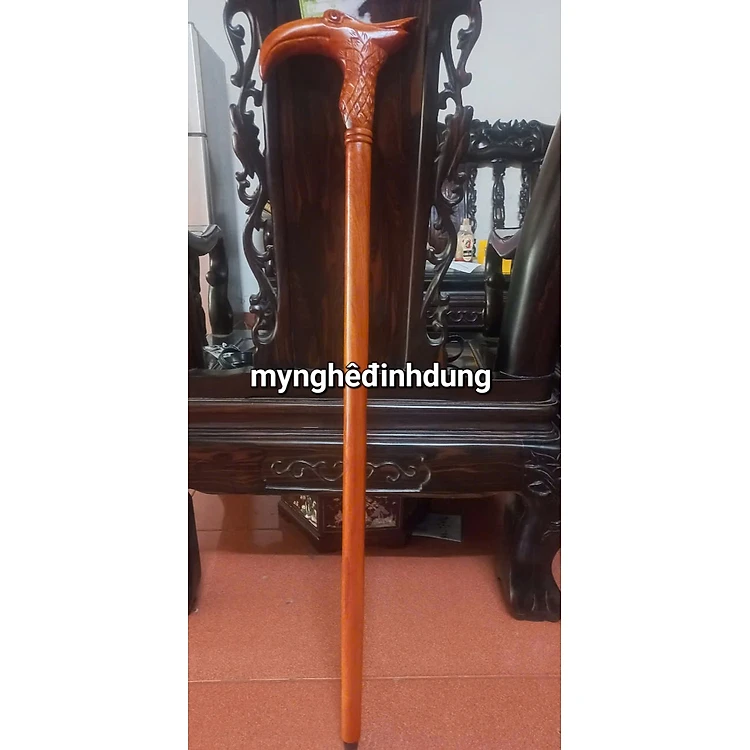 Gậy batong khắc đầu đại bàng bằng gỗ hương đẹp long lanh dài 90x3cm