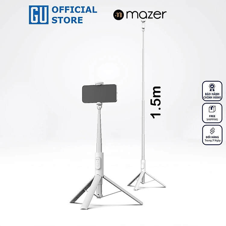 Gậy Chụp Ảnh Mazer Foldafie Extend Dựng Đứng 1.5m Có Kèm Remote Bluetooth Điều Khiển Chụp Từ Xa Hàng Chính Hãng