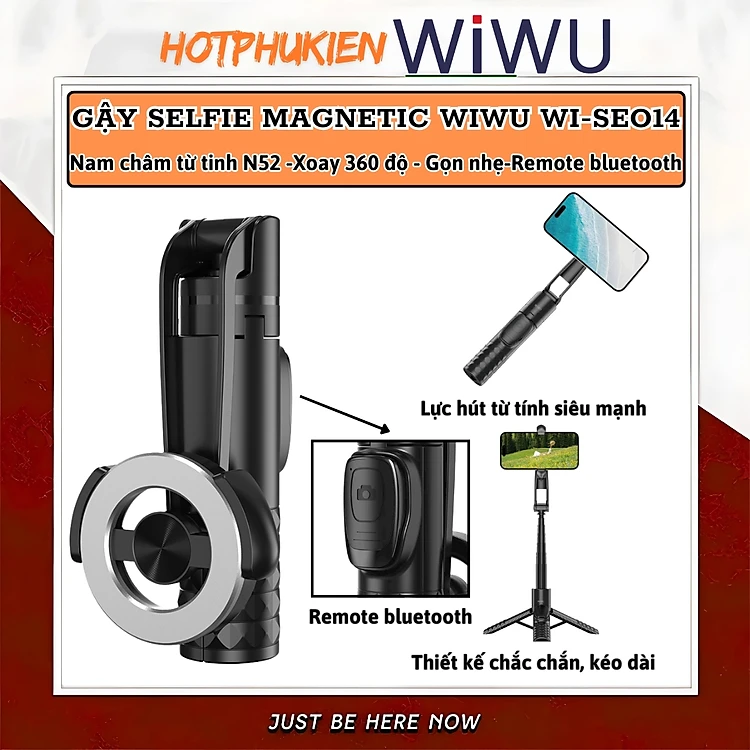 Gậy chụp ảnh selfie tự sướng từ tính nam châm magnetic kiêm tripod 3 chânđộ hiệu WlWU Wi-SEO14 remote bluetooth Xoay 360 độ, gập gọn, pin sạc type C - Hàng nhập khẩu