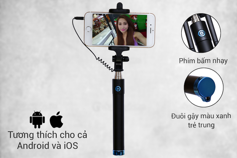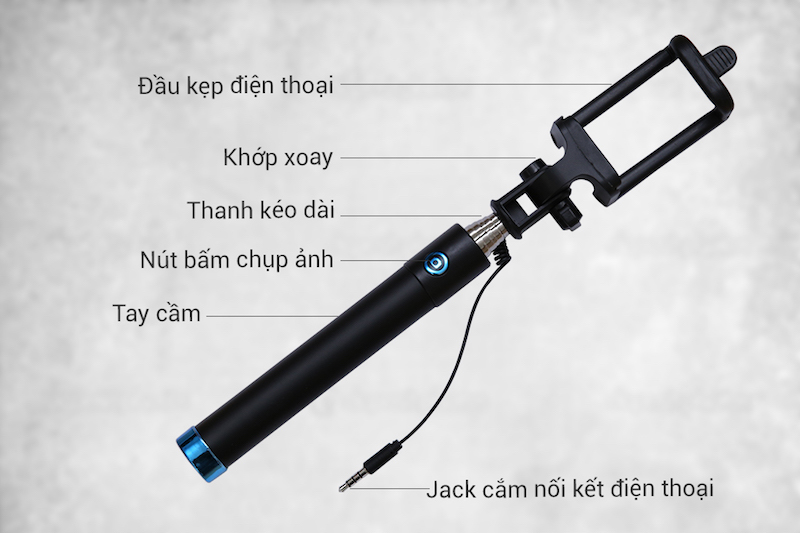 Gậy tự sướng Selfie Gậy chụp ảnh Dây Jack 3.5mm - Hàng Chính Hãng