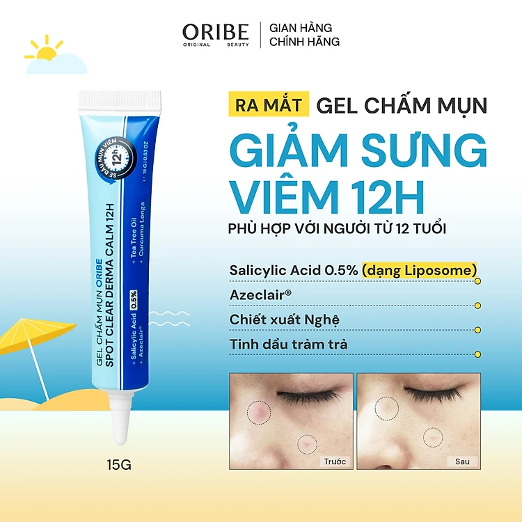 Gel chấm mụn giảm mụn giảm thâm mụn làm khô cồi mụn nhanh 12H Oribe Spot Clear Derma Calm 12H