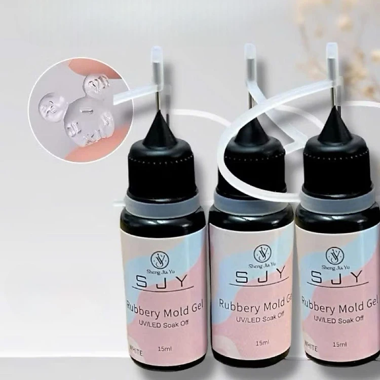 Gel Đổ Khuôn in 3D UV/LED Tạo Hình Charm SJY Rubbery Màu Trắng Trong Làm Nail Siêu Dẻo, Không Cần Top Lại, Chai 15ml Có Vòi Kim Tiện Lợi Kèm Nắp Đậy