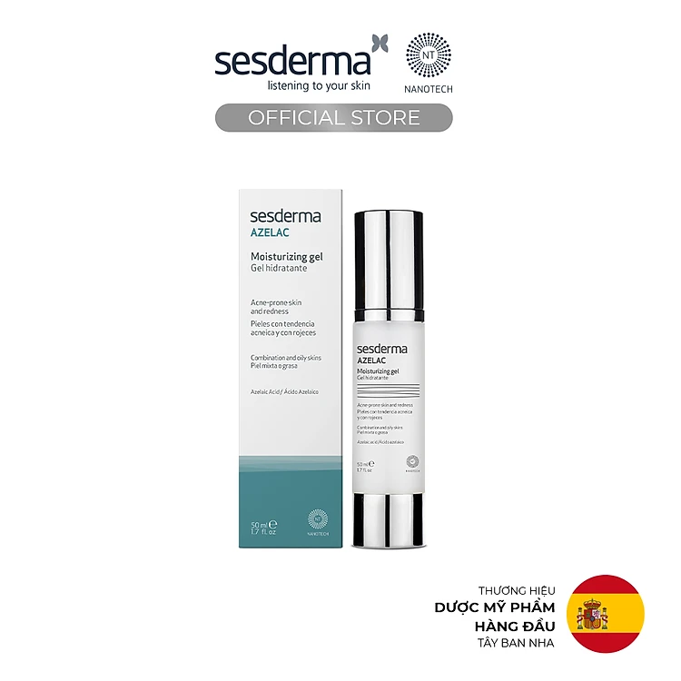 Gel dưỡng ẩm cho da dầu, nhạy cảm, mụn đỏ Sesderma Azelac 50ml