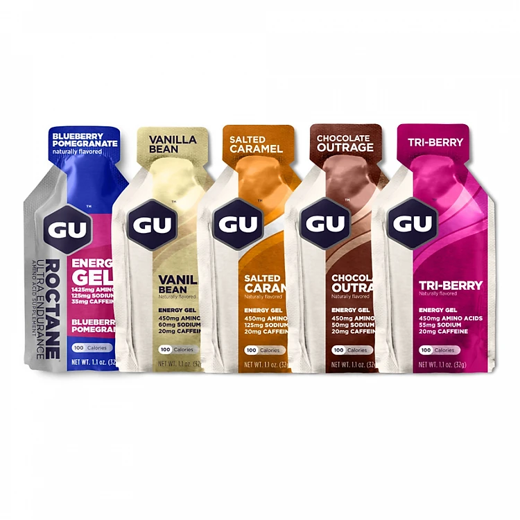 Gel năng lượng chính là sản phẩm thành công nhất, là tiền đề tạo nên GU ngày nay. Với mỗi thanh gel cung cấp 100 calories thiết yếu cho các vận động viên. Hỗn hợp gel được nghiên cứu một cách kỹ lưỡng gồm các thành phần carbohydrates đơn và phức hợp theo phương pháp kép giúp chuyển hóa năng lượng một cách hiệu quả cho việc hấp thụ.