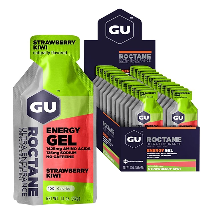 - Gel Năng Lượng Gu Roctane Energy Vị Dâu Tây Kiwi đây chính là sản phẩm thành công nhất, là tiền đề tạo nên GU ngày nay. Cùng với mỗi thanh gel cung cấp 100 calories thiết yếu cho các vận động viên.